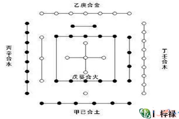 天干五合是相合的两干,其五行能量场向对方扩张并相互交融的态势,这种态势势必影响相合两干对他干的生克作用力,并且由于相合两干能量场的交融合化作用。