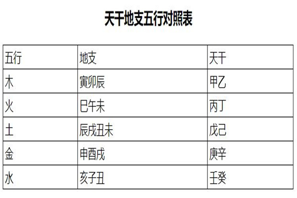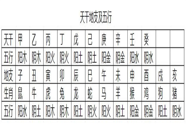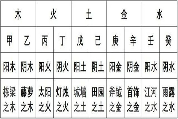 甲木、乙木、丙火、丁火、戊土、己土、庚金、辛金、壬水、癸水;