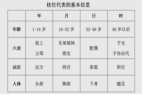 八字柱位代表的基本信息