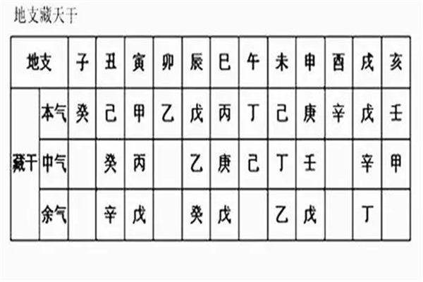 只有四个地支藏干独特,阳阴相反,即:子藏有癸水,午藏有丁火,是阳支藏阴干;巳藏有丙火,亥藏有壬水,是阴支藏阳干。
