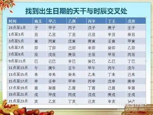由日天干推时干支,日干为甲或己,当日子时的干支为甲子;日干为乙或庚,当日子时的干支为丙子;日干为丙或辛,当日子时的干支为戊子;日干为丁或壬,当日子时的干支为庚子;日干为戊或癸,当日子时的干支为壬子。