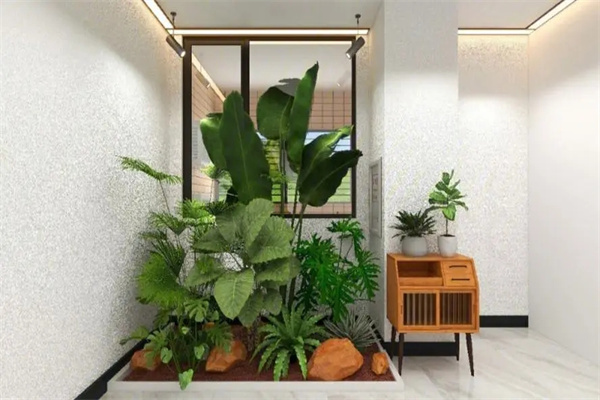 室内绿植的中心位置,最好是视线最好的位置,也就是任何角度都能看到的地方。同时注重绿植的排列、组合,如前低后高等。为了表现房间的深度,可以在角落里布置密集的房间,营造出一种丛林般的氛围。