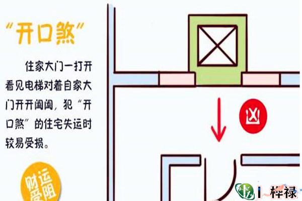 在风水学中,电梯开合为冲煞,电梯门频繁的一开一合,犹如猛虎之口,而如果住宅大门正对电梯,则受电梯开合之冲煞,便是犯了风水开口煞。