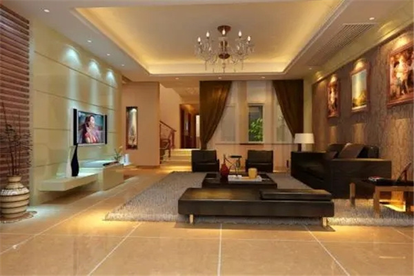一般客厅应采用高低布局,高是山,低是水,只有山水才有利于室内风水环境。面积较大的客厅可以采用到顶的高组合柜和大型的成套矮沙发,这样客厅看起来比较有气势,格局也大,气象开阔;面积比较小的客厅就不宜采用到顶的高组合柜。