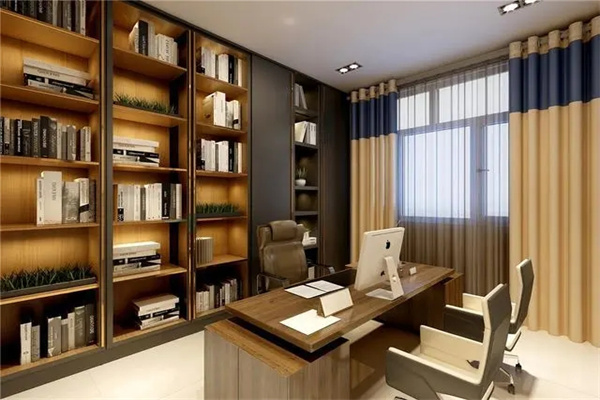 书房是读书、写作的地方,对光线、光线都有很高的要求。人在光线过强或过弱的环境下工作,都会严重影响视力,所以办公桌应设在有阳光但又不直接照射的窗户旁。