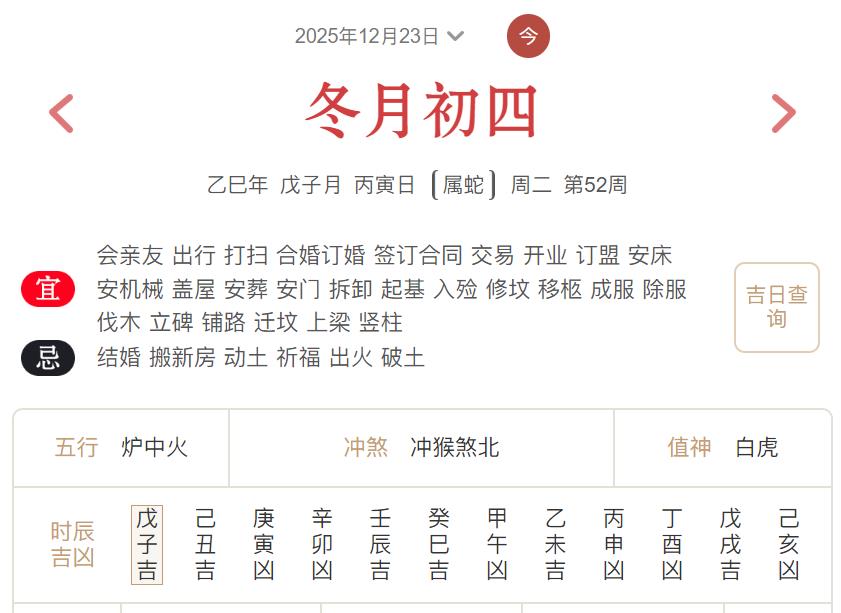 2025年12月23日黄历宜忌