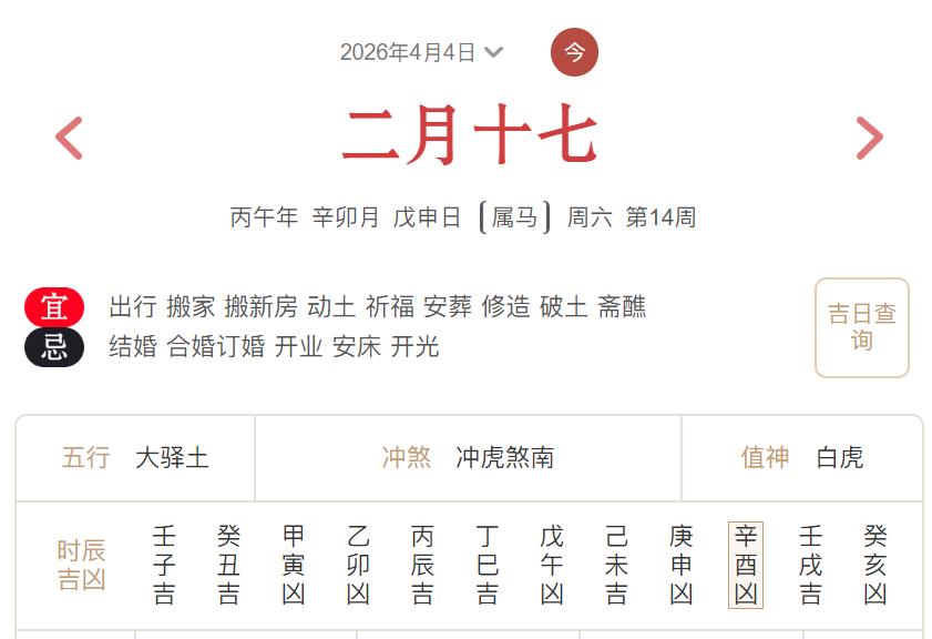 宜:出行 搬家 搬新房 动土 祈福 安葬 修造 破土 斋醮