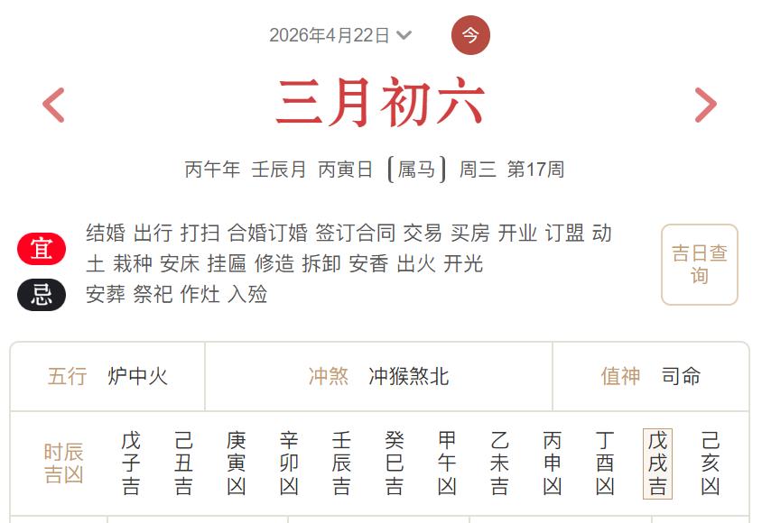 与当日五行同,寓意幸运眷顾,行事顺利,利于合作洽谈。