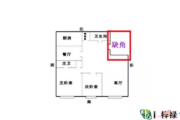 缺角本身有很多坏作用所以命名为煞,也就是房屋的平面图上明显看到有缺角形状。