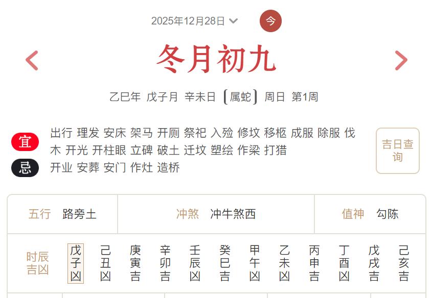 2025年12月28日黄历宜忌