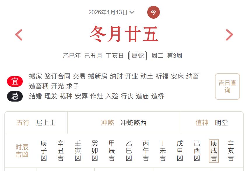 2026年1月13日黄历宜忌