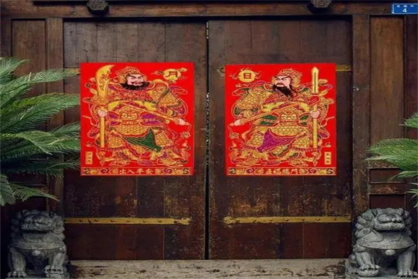 门神分为武门神及文门神,武门神普遍贴在大门上,东边为上,贴秦琼像,西边为下,贴尉迟恭的像,固然也不惟有秦琼、尉迟恭为门神,按照地区、文明以及风气的各别,也相关羽、张飞等各类门神。