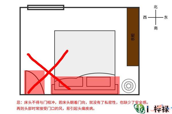 卧室虽应该偏暗,但光线要能照进来。置床不可对房门,朝门睡卧应该造成不安宁,对门易沉于淫欲。卧室家具忌三角形,这对主人孩子身体健康不利。卧室带厕所地面要干燥,若是湿重的情况下会
